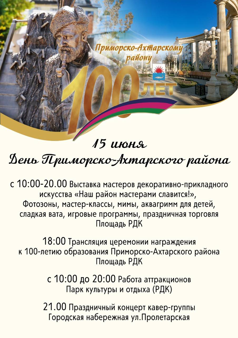 ✨🪷     Приглашаем Вас на праздничные мероприятия посвященные 100-летию образования Приморско- Ахтарского района.    🪷✨