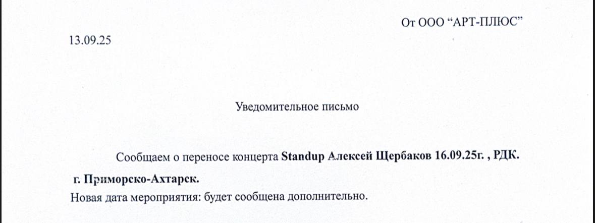 Концерт ЩЕРБАКОВА ПЕРЕНОСИТСЯ