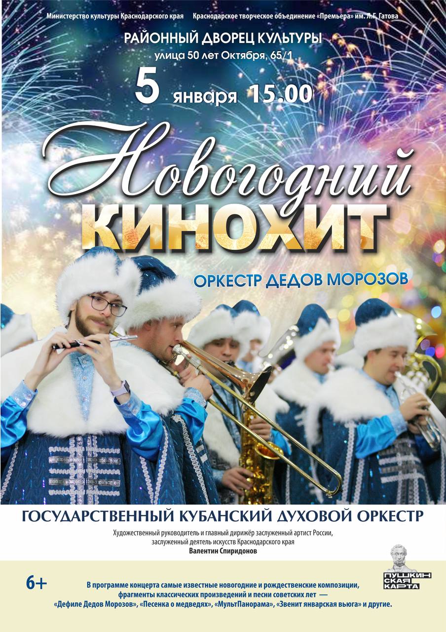 🎄Государственный кубанский духовой оркестр приглашает на концерт для всей семьи — «Новогодний Кинохит».