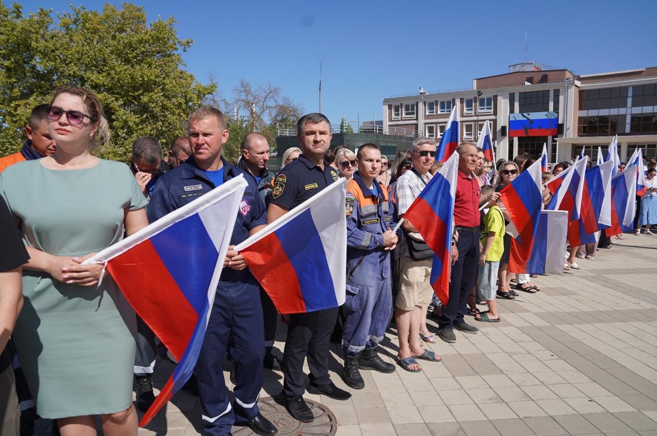 Сегодня во всех поселениях округа проводятся торжественные мероприятия, приуроченные ко Дню Государственного флага. В Приморско-Ахтарске масштабное праздничное мероприятие состоялось на площади Дворца культуры.