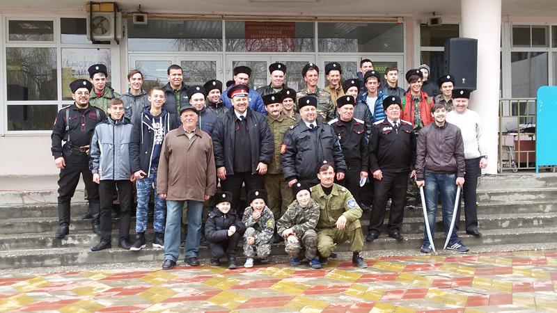 В завершении на площади перед Дворцом культуры всех участников поздравили атаманы Староминского района, исполнили традиционные казачьи песни и продемонстрировали казачье искусство владения шашкой.