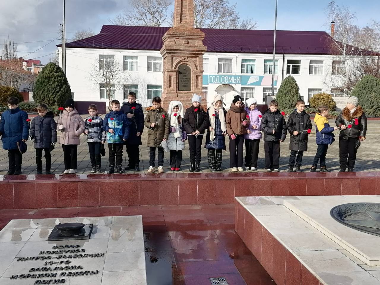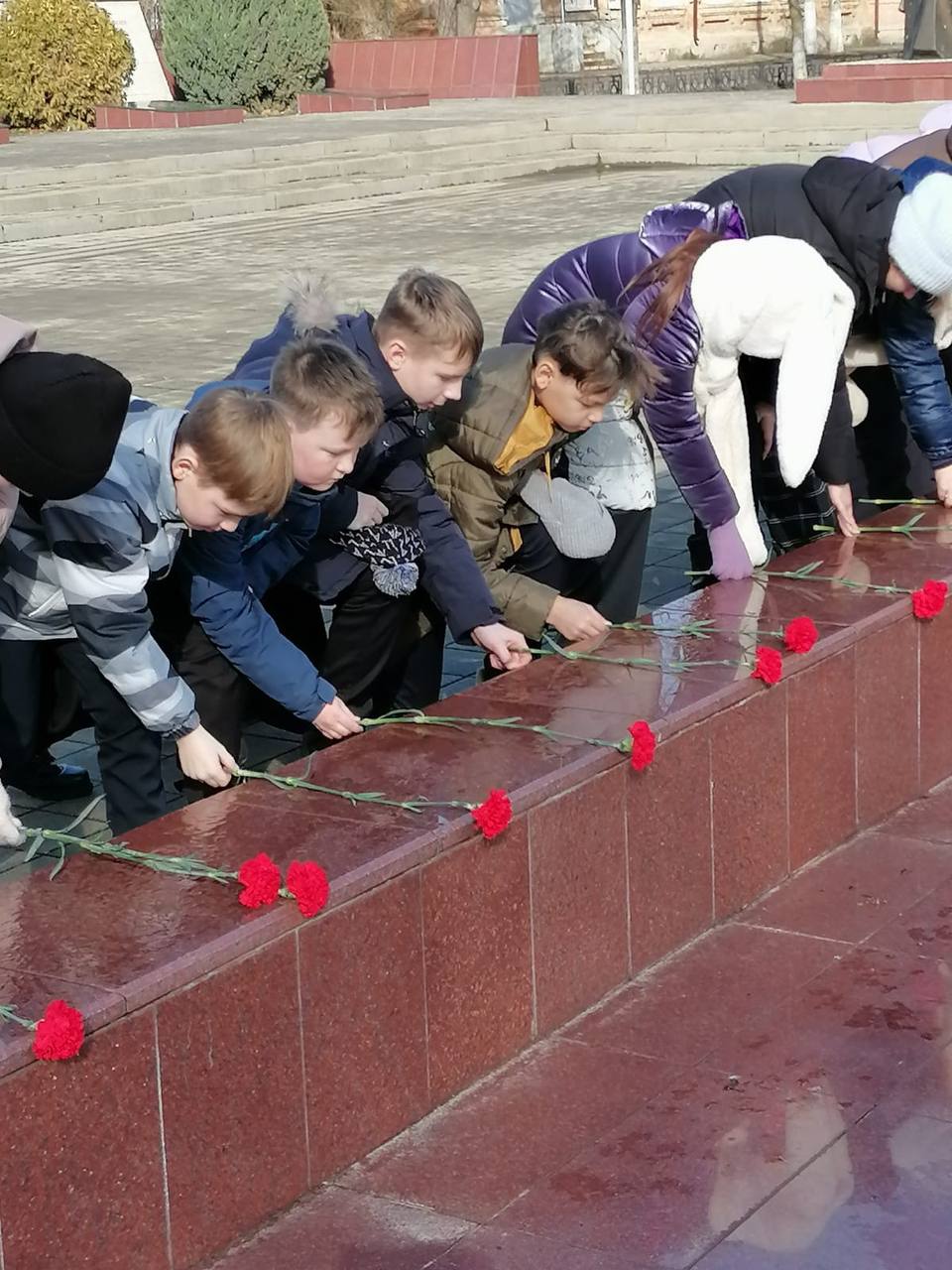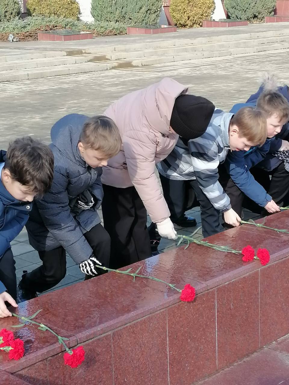 На мемориале Братские могилы" в 12:00 прошла акция в рамках Эстафеты Памяти "КРАСНАЯ ГВОЗДИКА" школьники третьих, четвертых классов возложили красные гвоздики к Вечному огню.